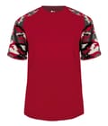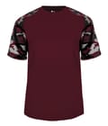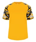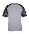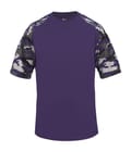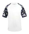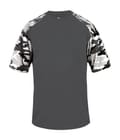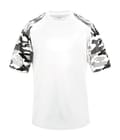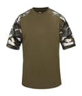 Camo sport tee designed with sublimated shoulder panels and sleeves for contrast styling, plus moisture management and odor protection to keep teams comfortable.