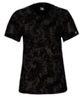 * 65% Sublimated Polyester/25% Mercerized Cotton/10% Rayon moisture management/odor protection performance fabric * Badger Sport paneled shoulder for maximum movement * Self-fabric collar * Double-needle hem * Badger heat seal logo on left sleeve