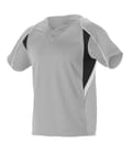 * 100% Extreme Mock Mesh Cationic Colorfast Poly With Moisture Management Fibers * Two Button Henley Inset Placket * Baseball Gray And White Curved Side Inserts Tomatch Both Colors Of Pants * White Piping On Shoulders Through End Of Sleeves-Both Front And Back Of Jersey