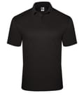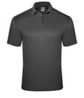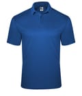* 100% Polyester moisture management/odor protection performance mock mesh fabric * Three button placket * Solid knit collar * Taped back neck * Double-needle hem