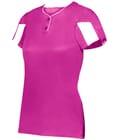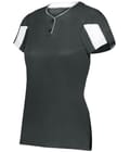 A lightweight ladies' placket jersey with a vented mesh back, moisture-wicking performance, and set-in sleeves for breathable secure comfort.