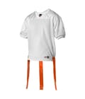 * 100% Extreme Mesh Cationic Colorfast Polyester 70 Denier Tricot Mesh With Moisture Management * 100% Extreme Dazzle Cationic Colorfast Polyester (Yoke And Sleeves) * 100% Polyester (Flags) * Waist Length Jersey * 3 Regulation Attached Football Flags W/2X2 Velcro Patches * 2" Elastic Back Hem For Improved Fit