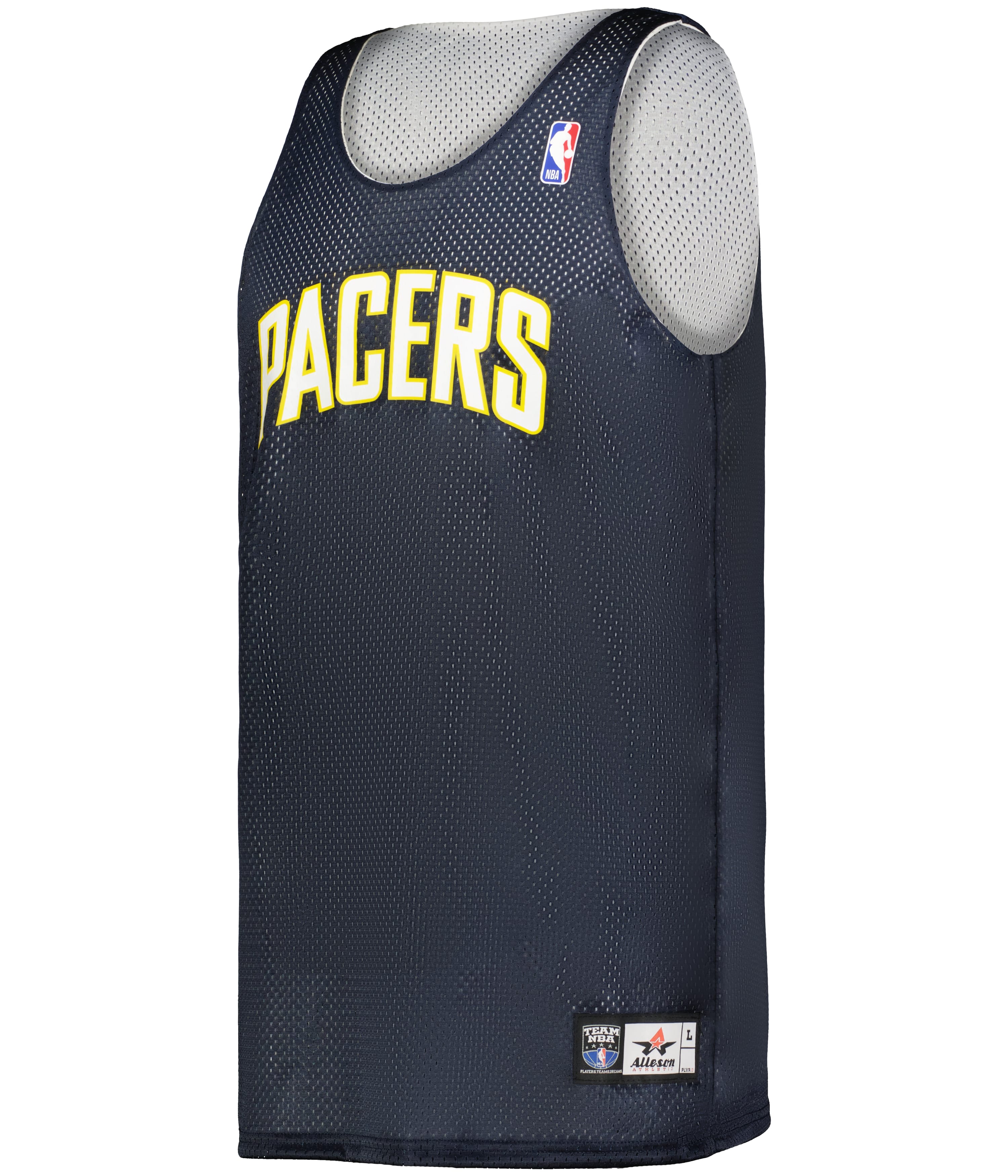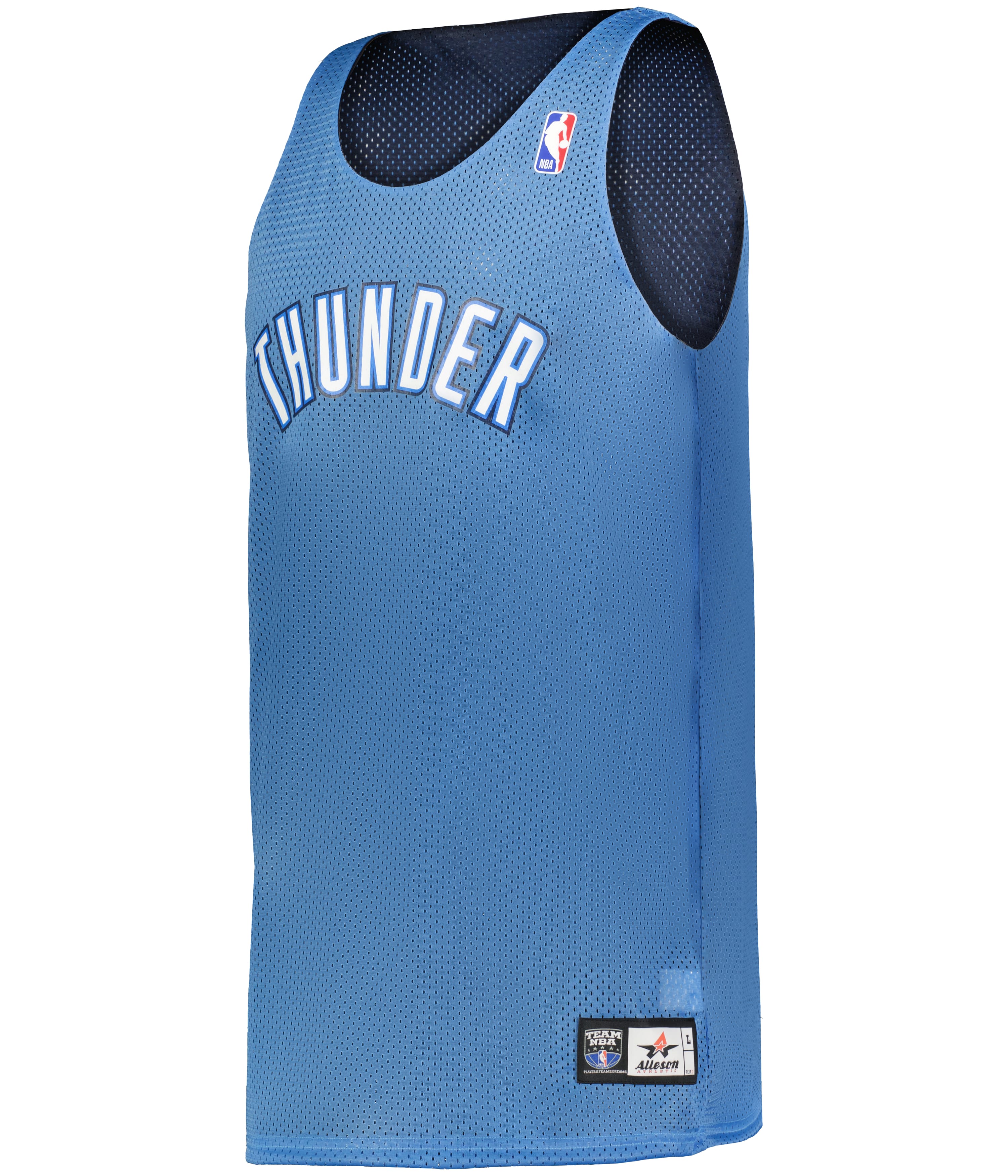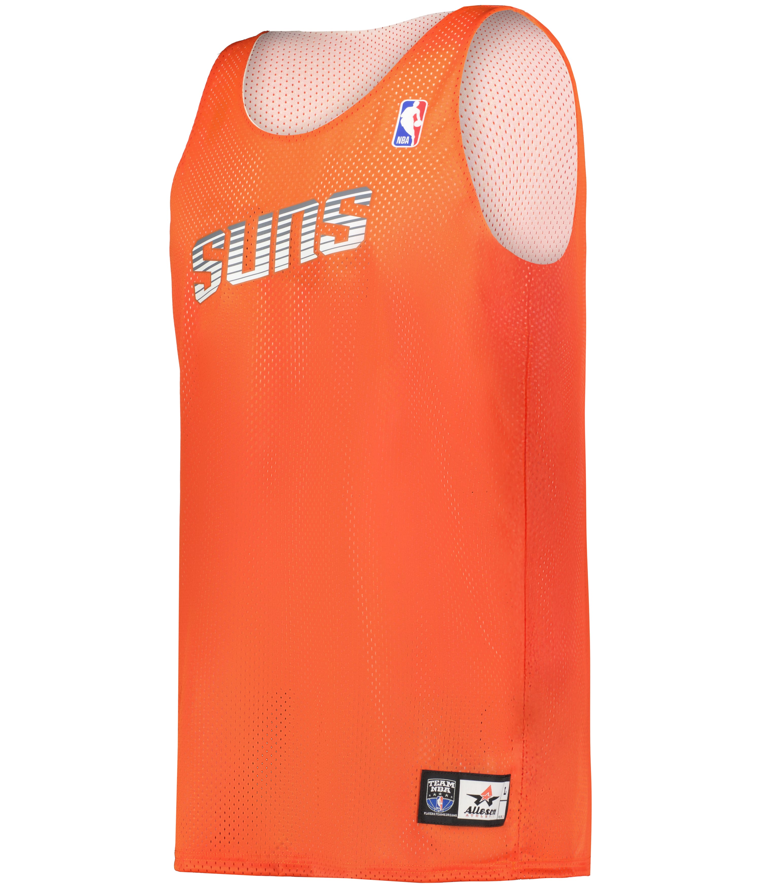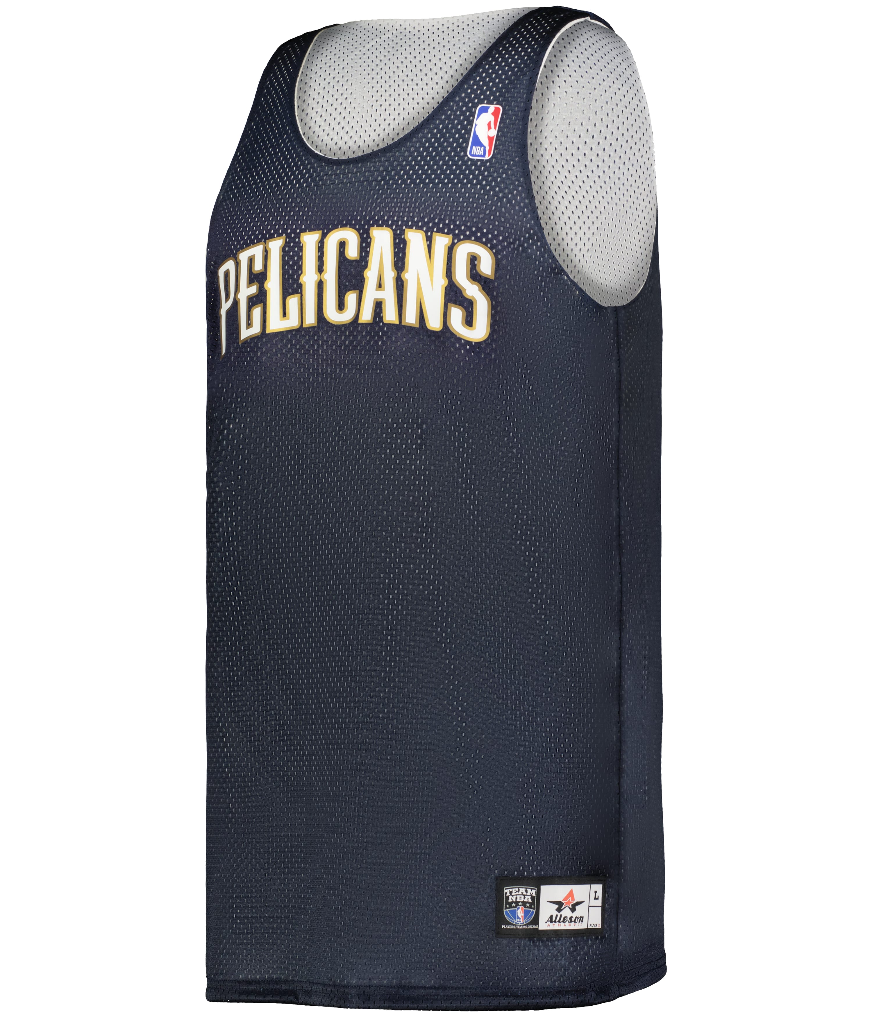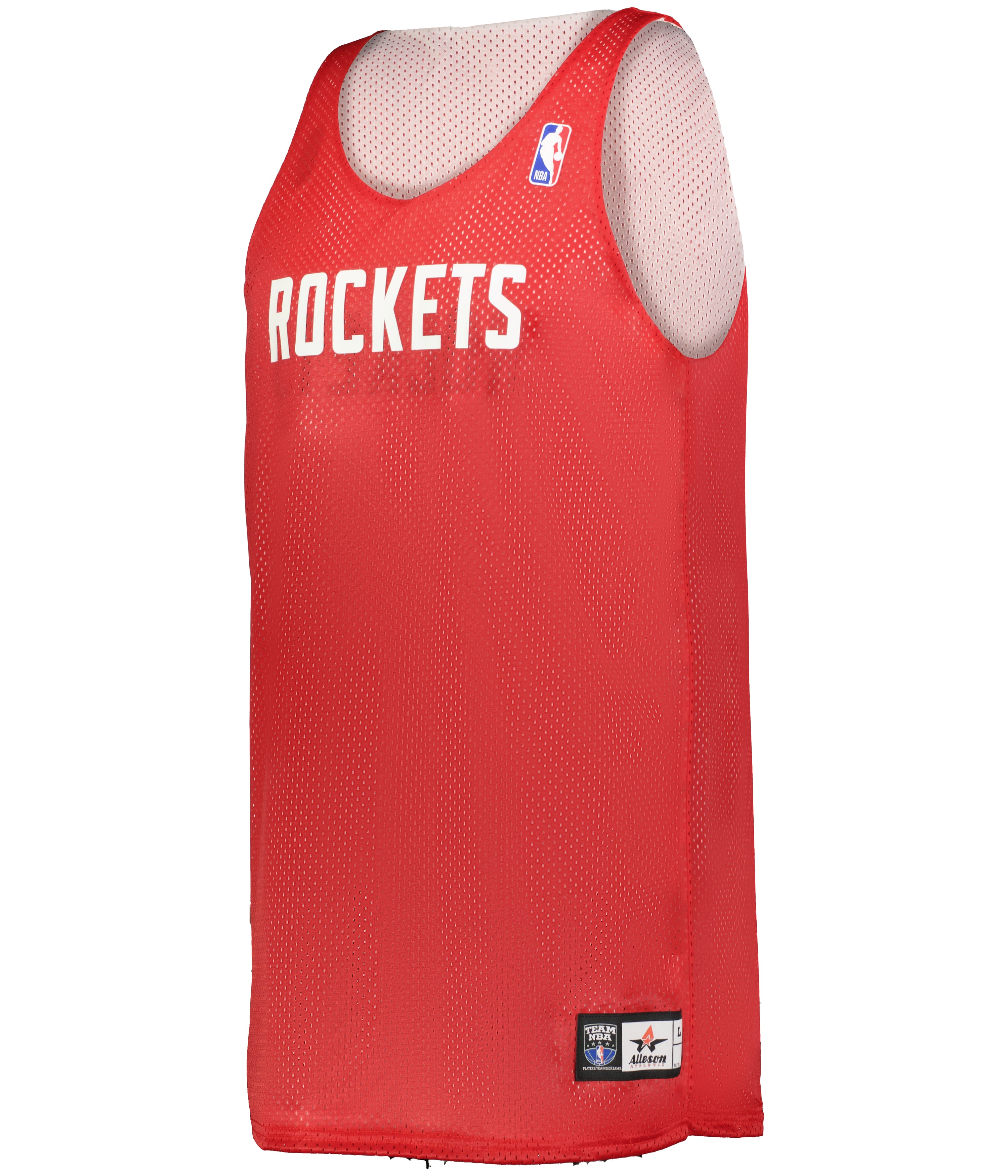 * 100% Extreme Mesh Cationic Polyester 70 Denier Tricot Mesh * Slimmer Silhoutte with Slim Shoulder Design * Two Color, Double-Ply Fully-reversible Jersey * Open Bottom For Printing * NBA Logoman Heat Seal on Upper Left * Authentic NBA Logos on Cener Front Chest on Main and Reversible Side