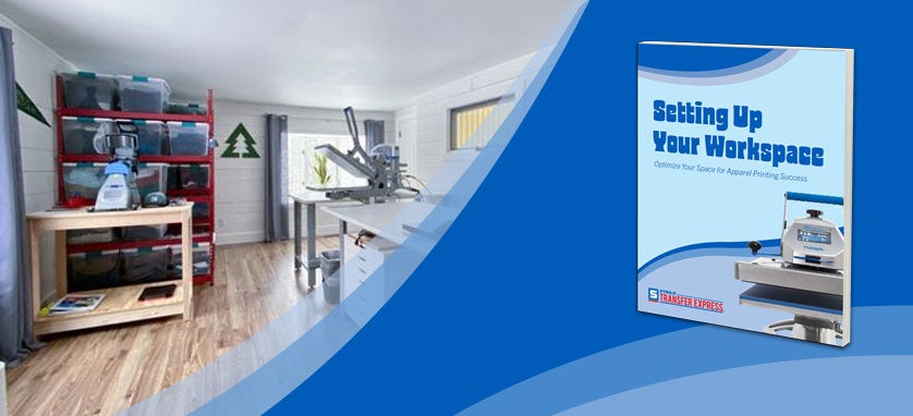 In this ebook, we'll show you some tips on how to set up your workspace for optimal t-shirt printing productivity.